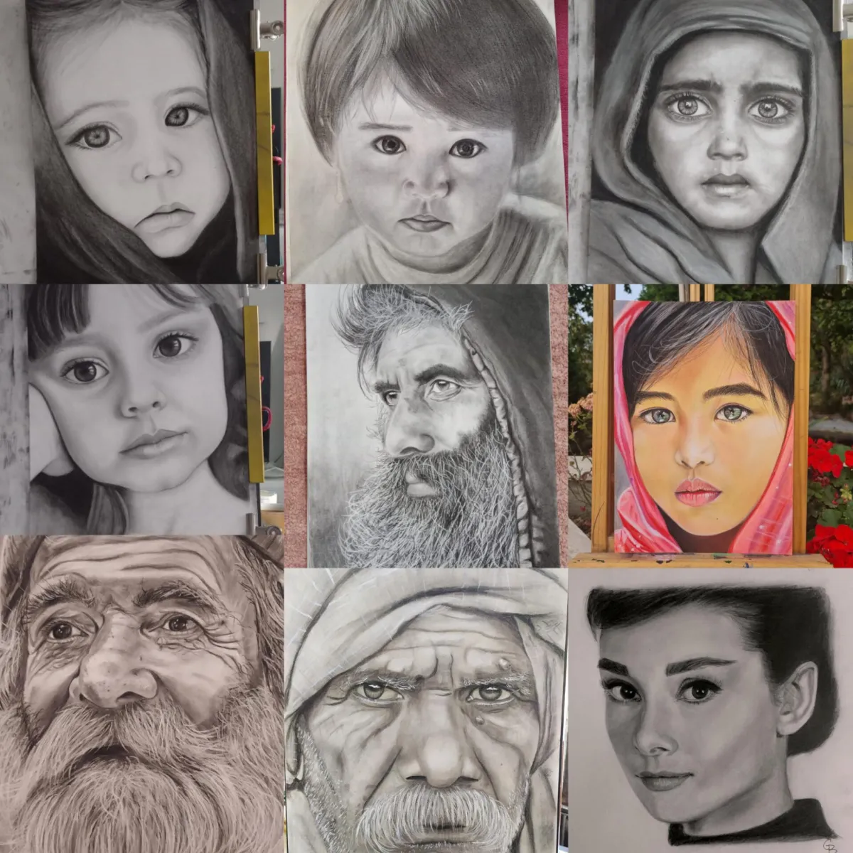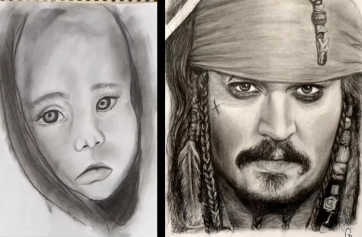 Još jedna Nevena uz pomoć moje Akademije savladala je proporcije, i naučila da svojim portretima da dubinu. Naučila je raspored senke i osvetljenja što ranije nija znala. Posle manje od 4 meseca postigla je ovakve rezultate. Radovi levo su radovi ranijih godina, dok su radovi desno radovi posle mojih video lekcija i saveta i smernica.