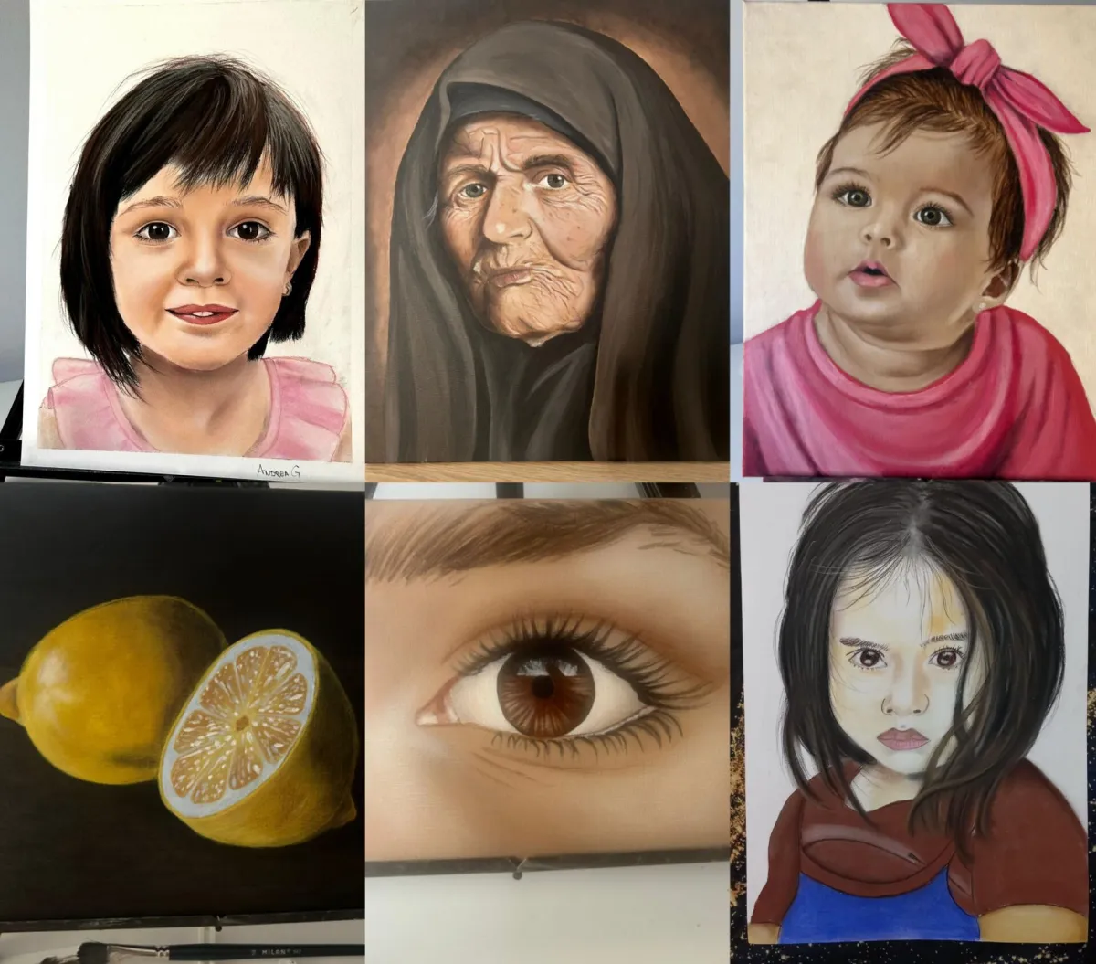 Beti je neko ko nikada ranije nije crtao ni slikao portrete. TOTALNI POČETNIK.. Maksimalno je bila posvećena svakom zadatku, i lekciji. Sledila je sve moje metode i savete kako iz lekcija tako i sa konsultacija i za par meseci savladala sve tehnike od grafita, pastela, akrila i ulja. Pored portreta takođe nikada nije radila ni pejzaže, posle samo jedne lekcije sa Akademije savladala je i taj motiv.